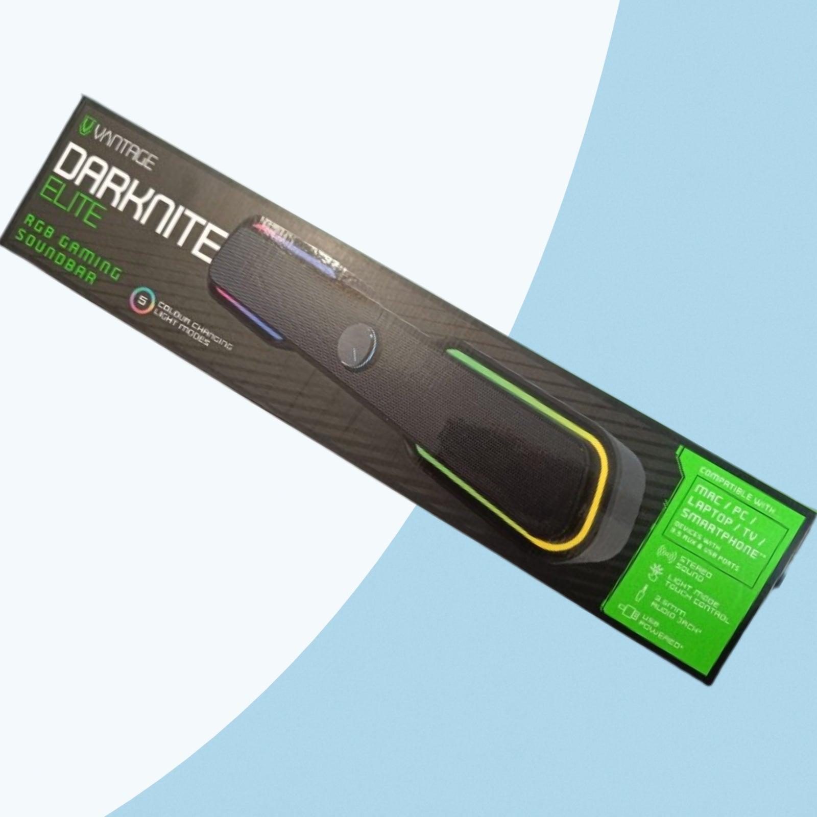 Gaming soundbar with aggression! Add this soundbar to your PC or TV setup; then, kick back and listen to your favourite shows or play your favourite games. 5 changeable RGB light modes to match your mood or style.